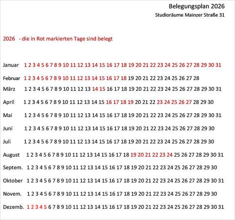 Belegung Mainzer Straße 31 - 2026