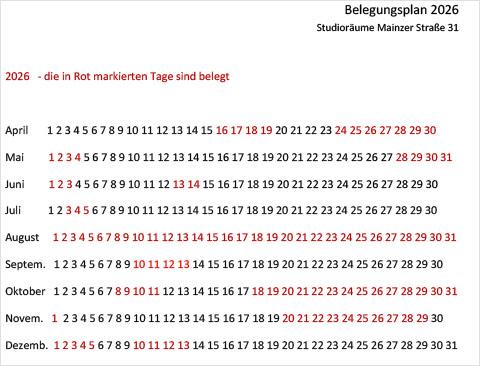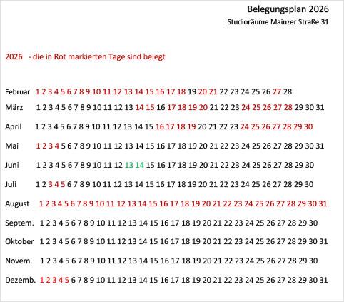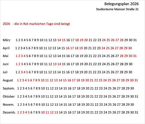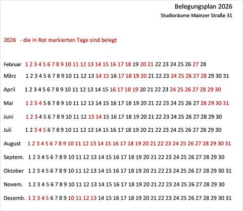 Belegung Mainzer Straße 31 - 2026