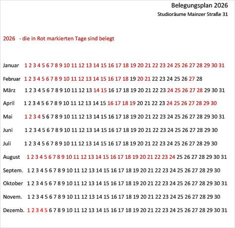 Belegung Mainzer Straße 31 - 2026