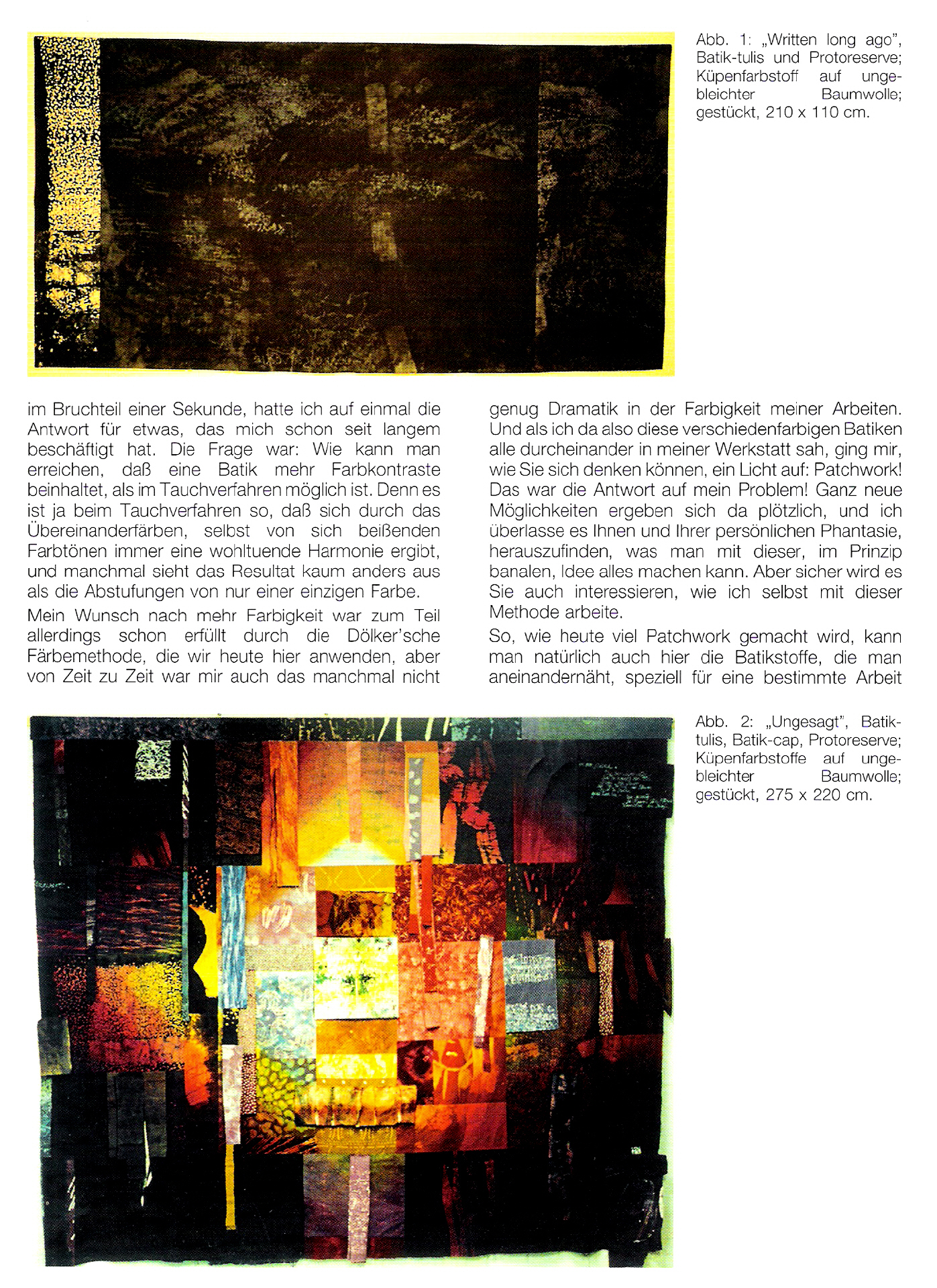von Joachim Blank in Textilkunst International Heft 4 /1998, S. 180ff (fehlt!)