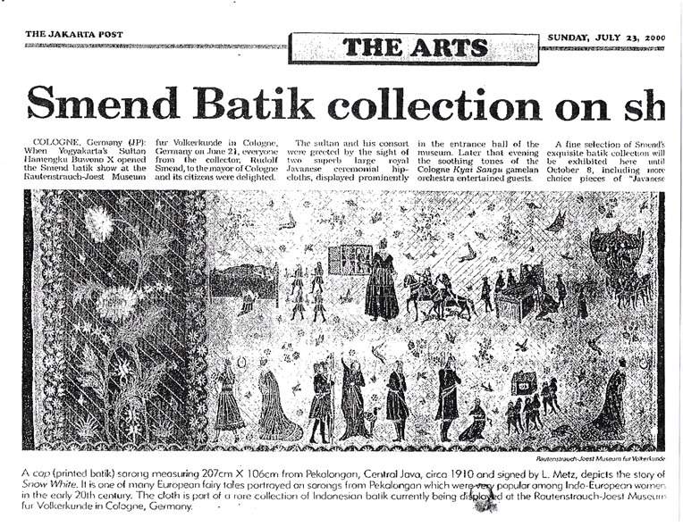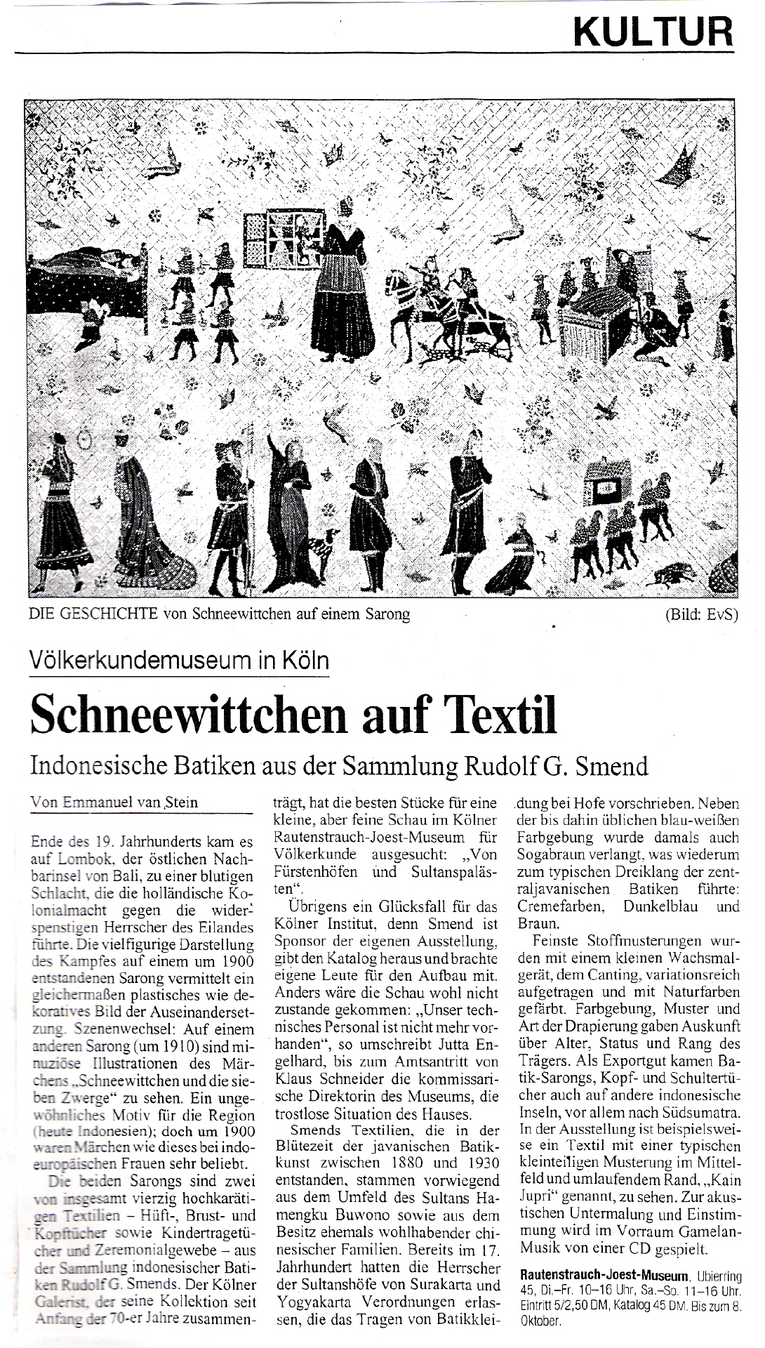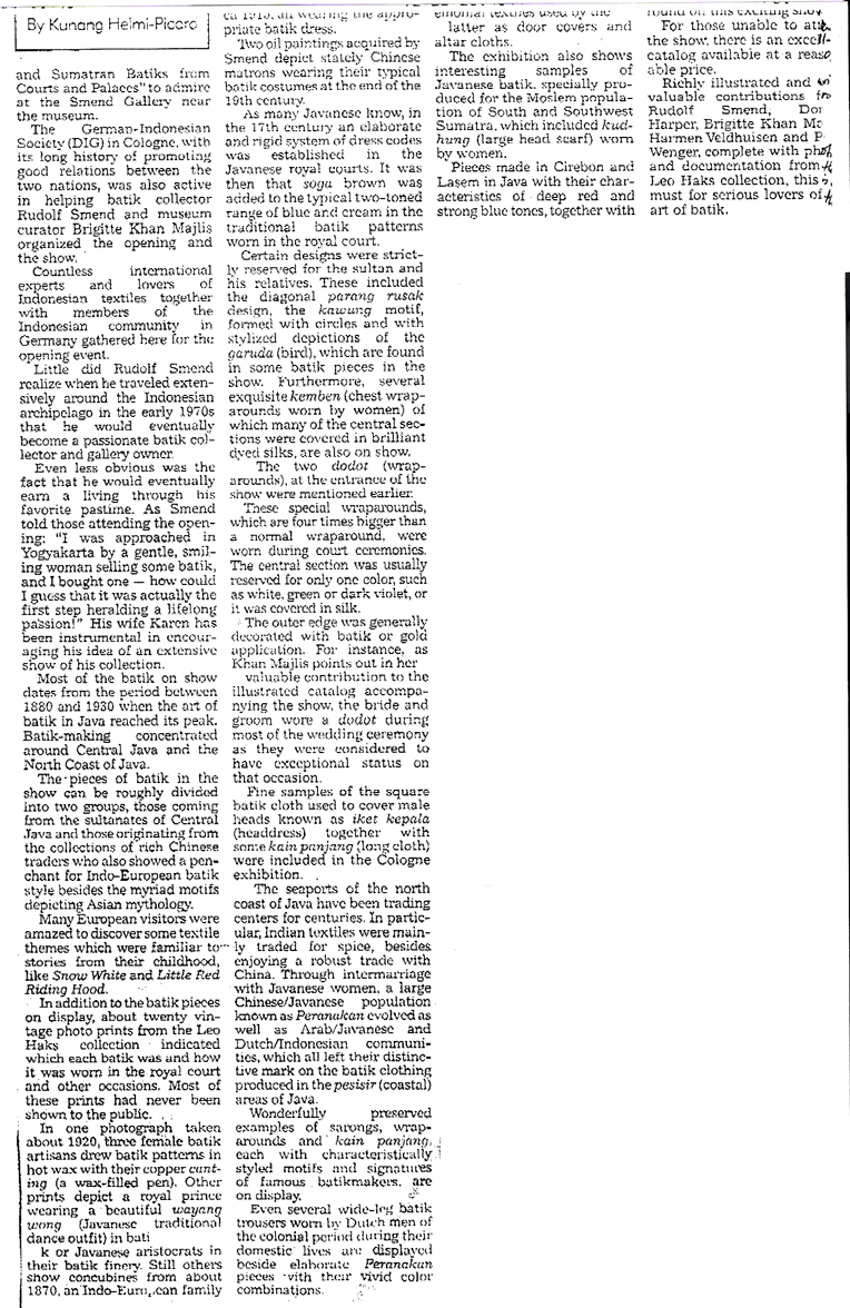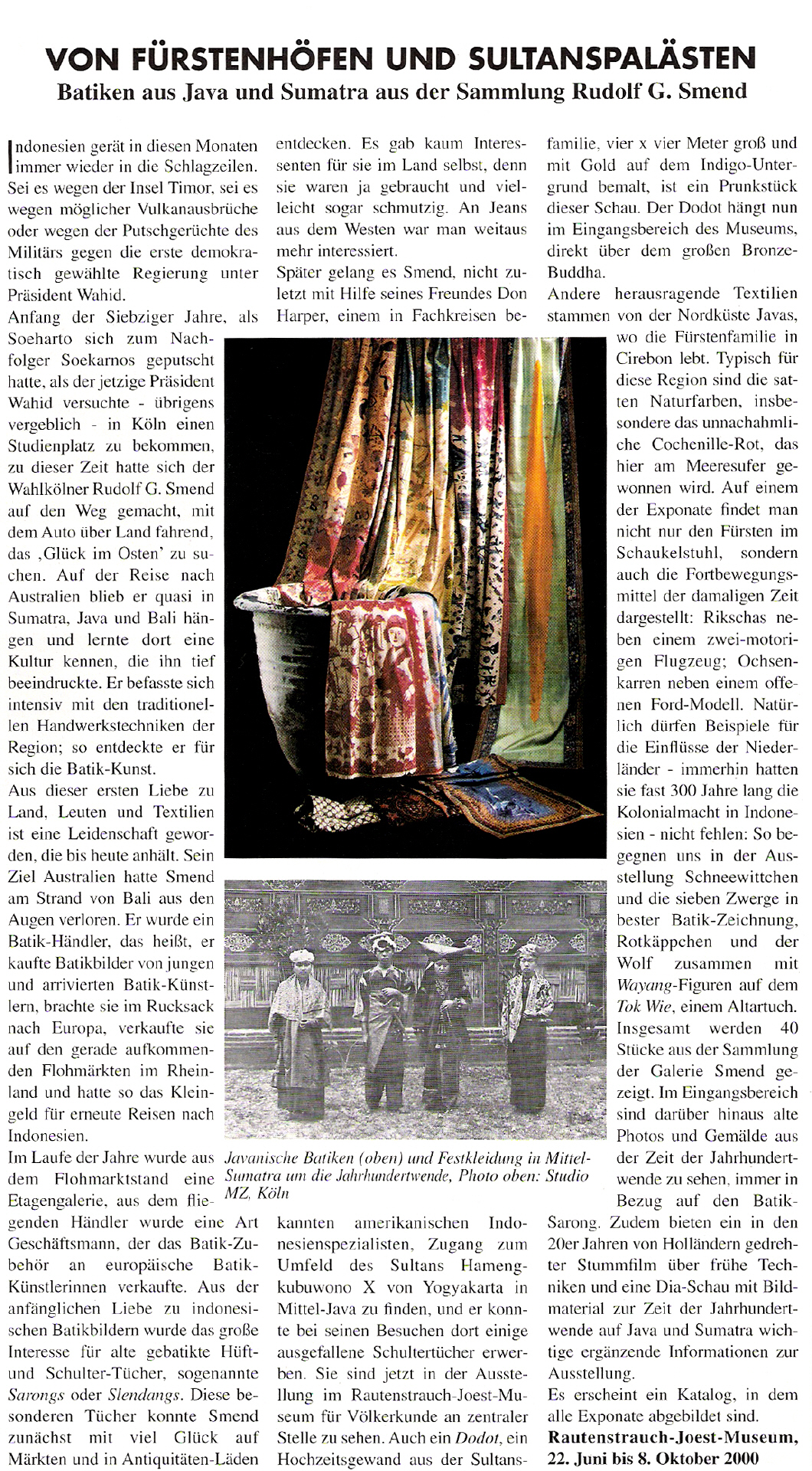 – Batiken aus Java und Sumatra aus der Sammlung Rudolf G. Smend im Rautenstrauch-Joest-Museum, Köln“ von Antje Soléau in textilkunst international Heft 2´2000 S. 68ff