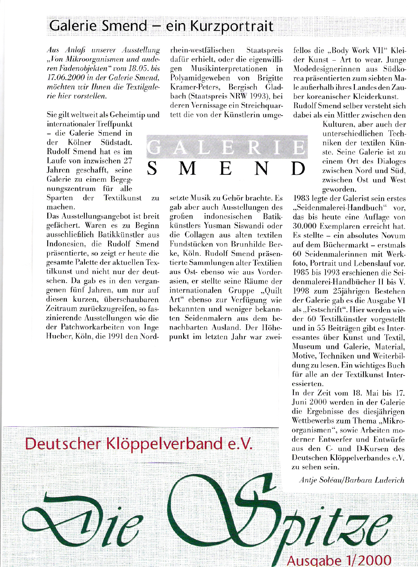 22 „Galerie Smend - Ein Kurzporträt “ in Die Spitze, Nr. 1/2000
